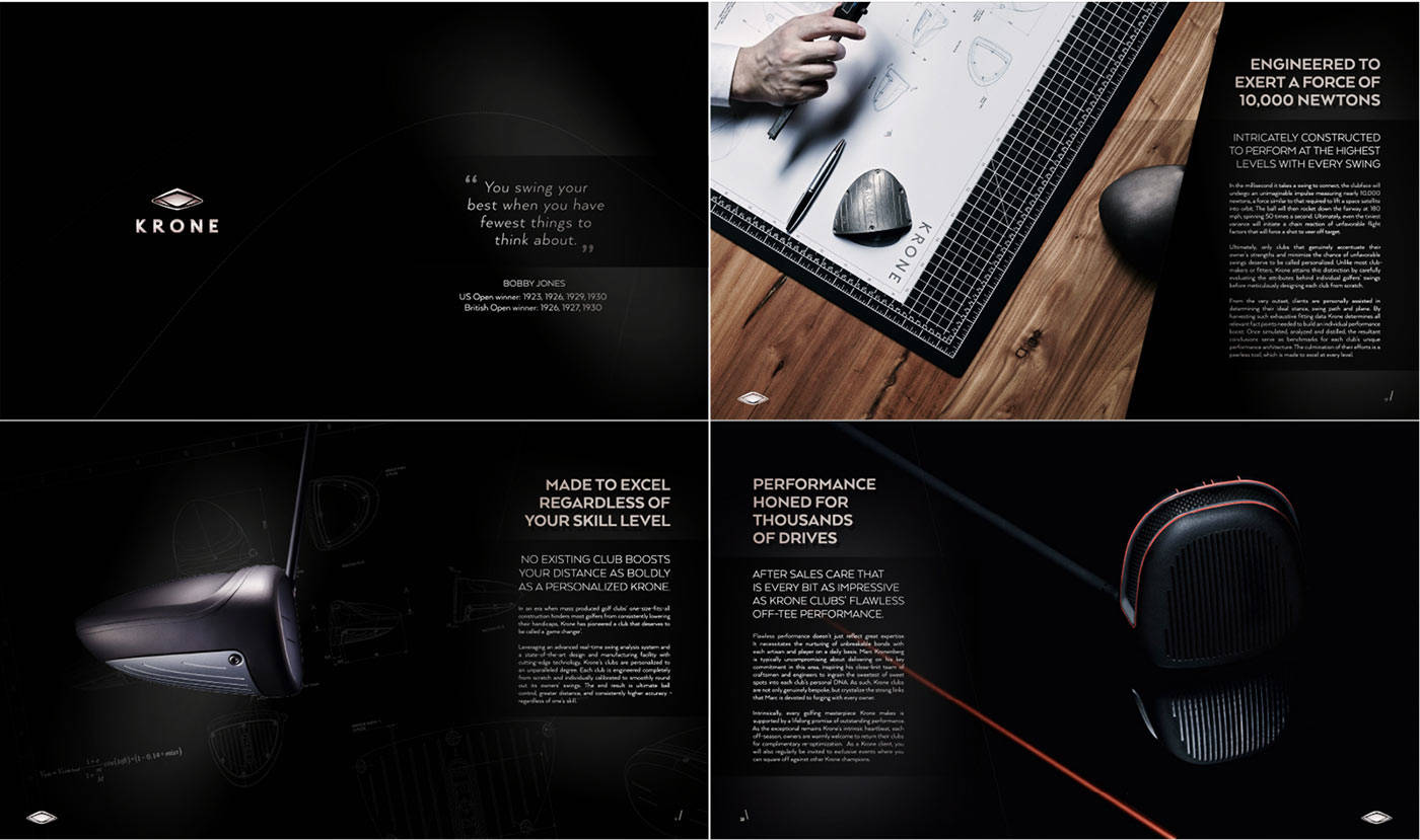 Dallas based Marc Kronenberg, former TaylorMade golf engineer and founder of the golf startup Krone, pursued to shape the future of golf. Krone’s bespokely made and 3D-printed golf clubs aimed to combine maximum swing performance with unparalleled precision based on the startup’s individually measured club construction parameters. Exactly fitted to the unique body metrics of each golfer, Krone’s clubs were to perform like an extension of one’s arm. Marc invited Envary to collaborate developing Krone’s high-end brand identity and communication strategy amongst other collaterals such as website, pre-sales brochure and merchandise.