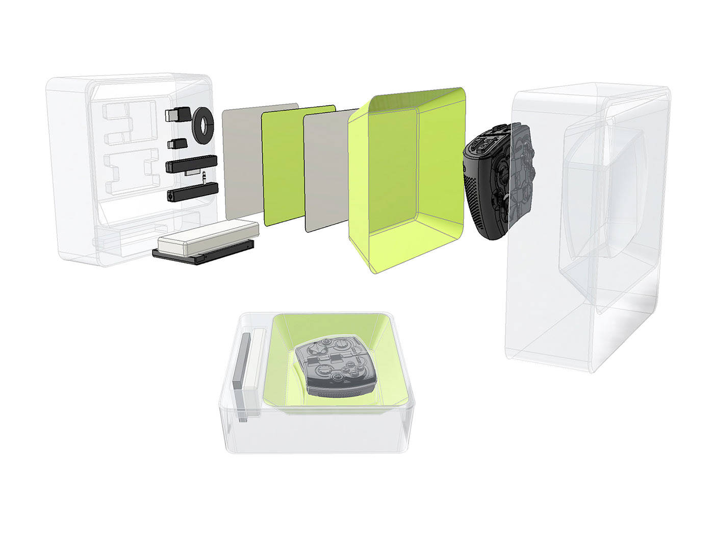 After our team previously developed Phonejoy’s brand and product ecosystem, the startup needed a powerful yet cost-effective e-commerce packaging, also capable to present its game controller in small POS environments. Envary approached the design development of the packaging with the objective of avoiding any use of additional shipping carton that could potentially increase shipping cost for many of the overseas customers. With the aim of a cost-effective packaging that could also help reducing costly returns due to shipping-related damages, the box had to securely house the controller, several accessories and a pouch yet convey the same ‘cool’ that Phonejoy’s product already embodied.