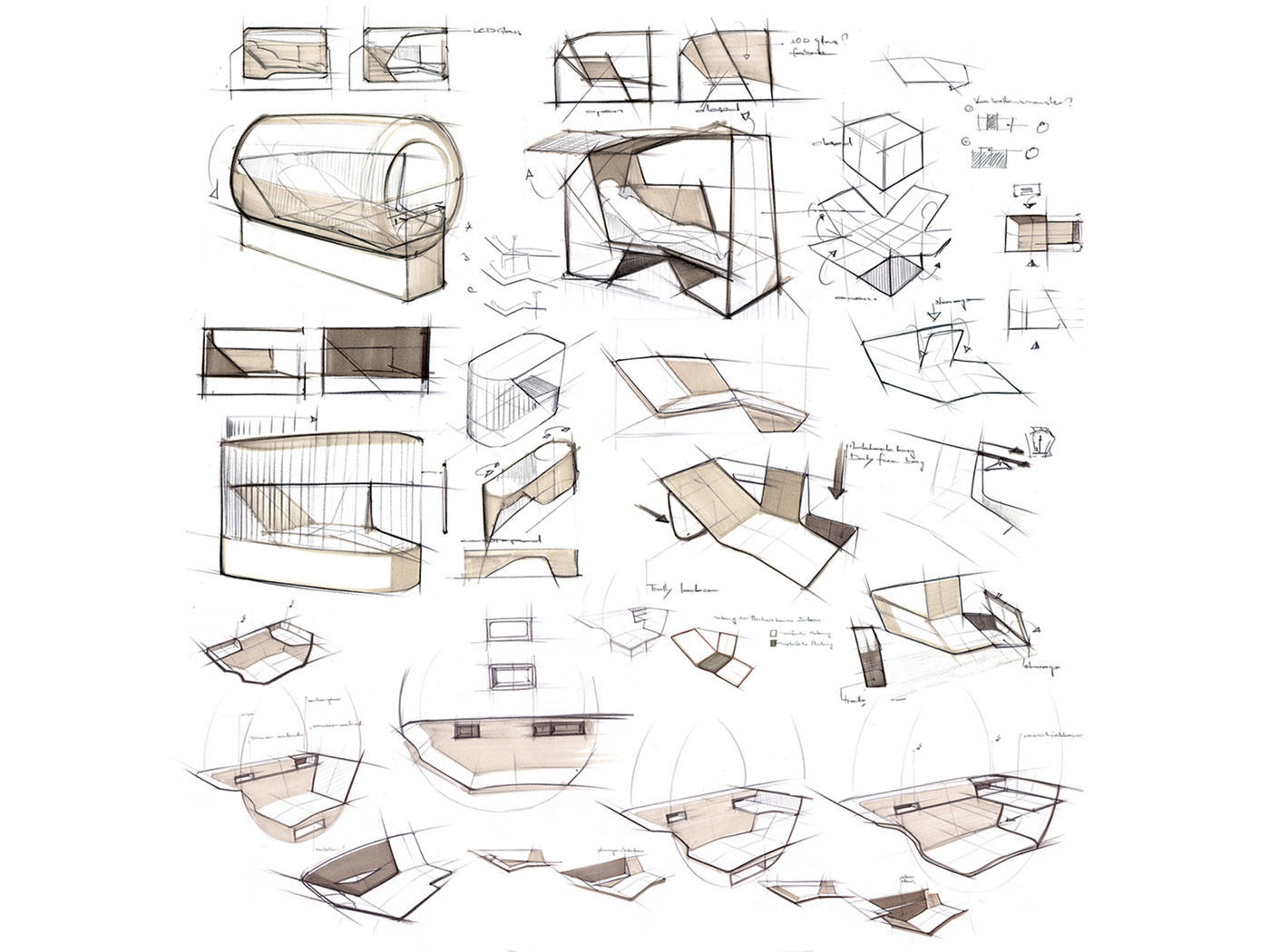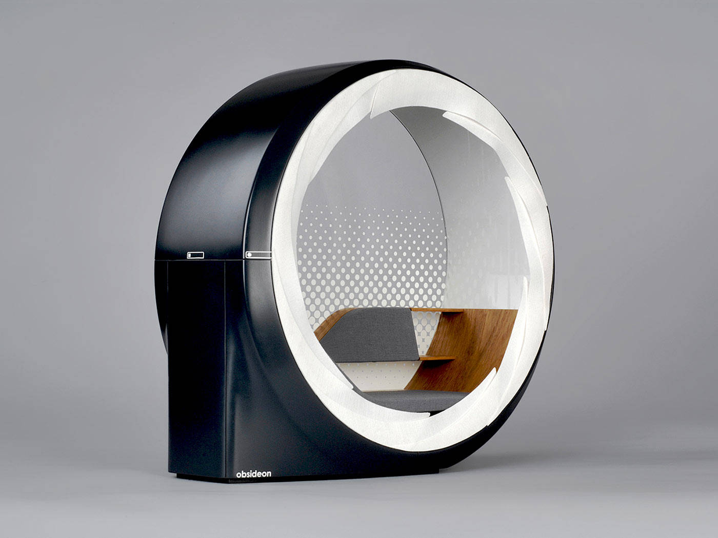 The Obsideon pod is a convenient refuge from the hustle and bustle of airports. We designed Obsideon to be a personal relaxation cocoon, helping travellers to bridge longer waiting times between flights, providing privacy, comfortability and the latest flight information. Offered as an additional service by the airline or as part of a signature airport service, the Obsideon Pod will be commonly located inside the terminal area and can be arranged in loose clusters or more discreetly away from the main passenger circulation routes.
